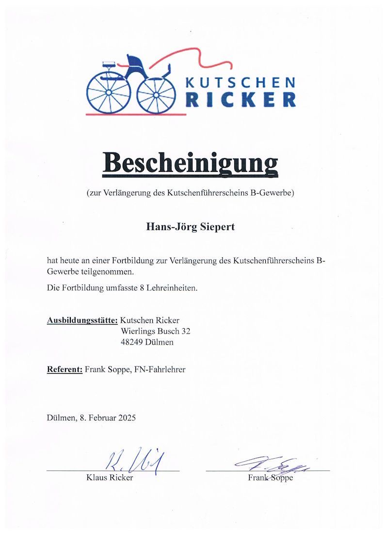 Dieses Fahrabzeichen bildete die Grundlage für den anerkannten "Kutschenführerschein B Gewerbe".